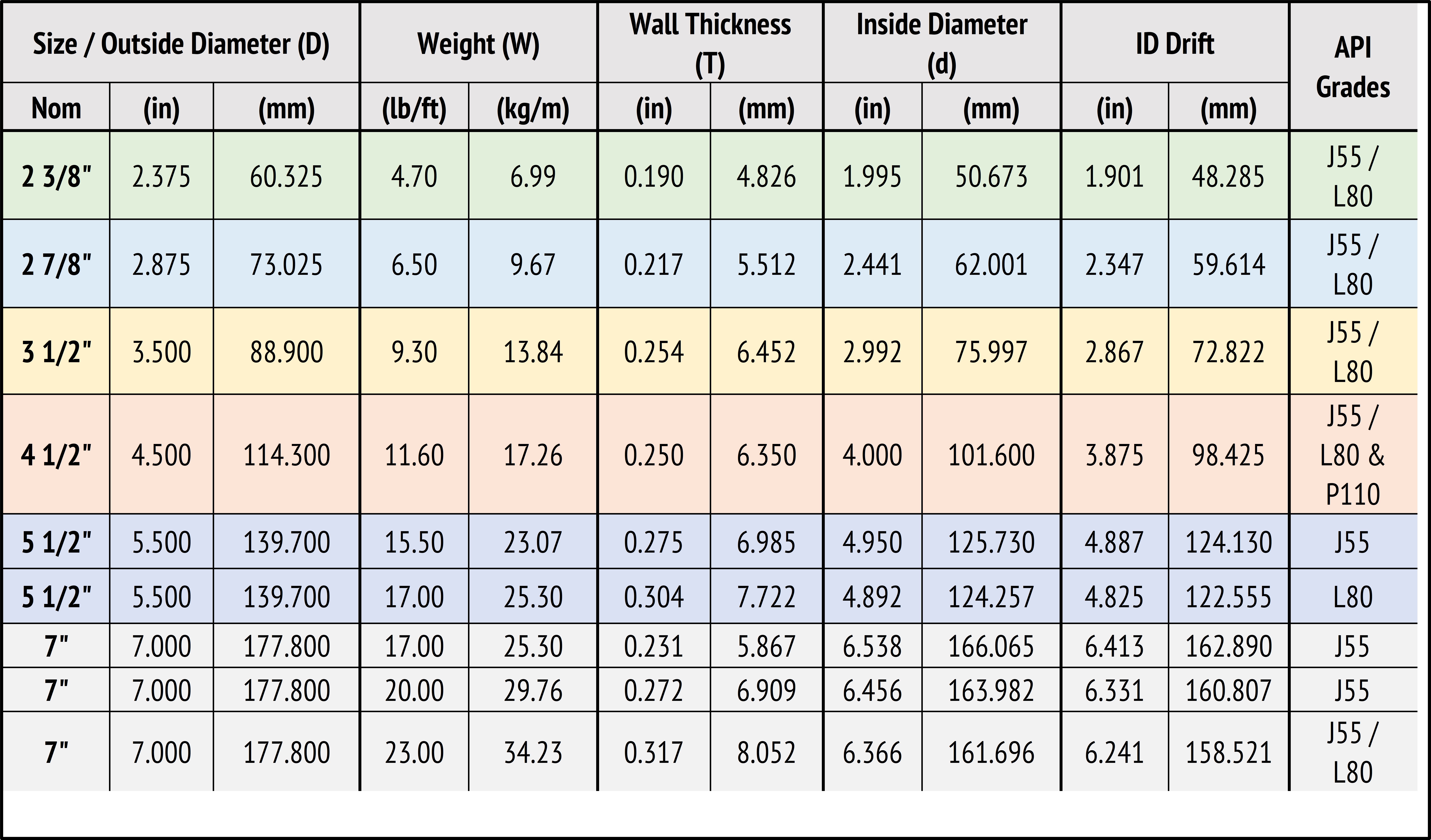 Tubing & Casing Steel Alloy Pipes Dimensions & Specifications